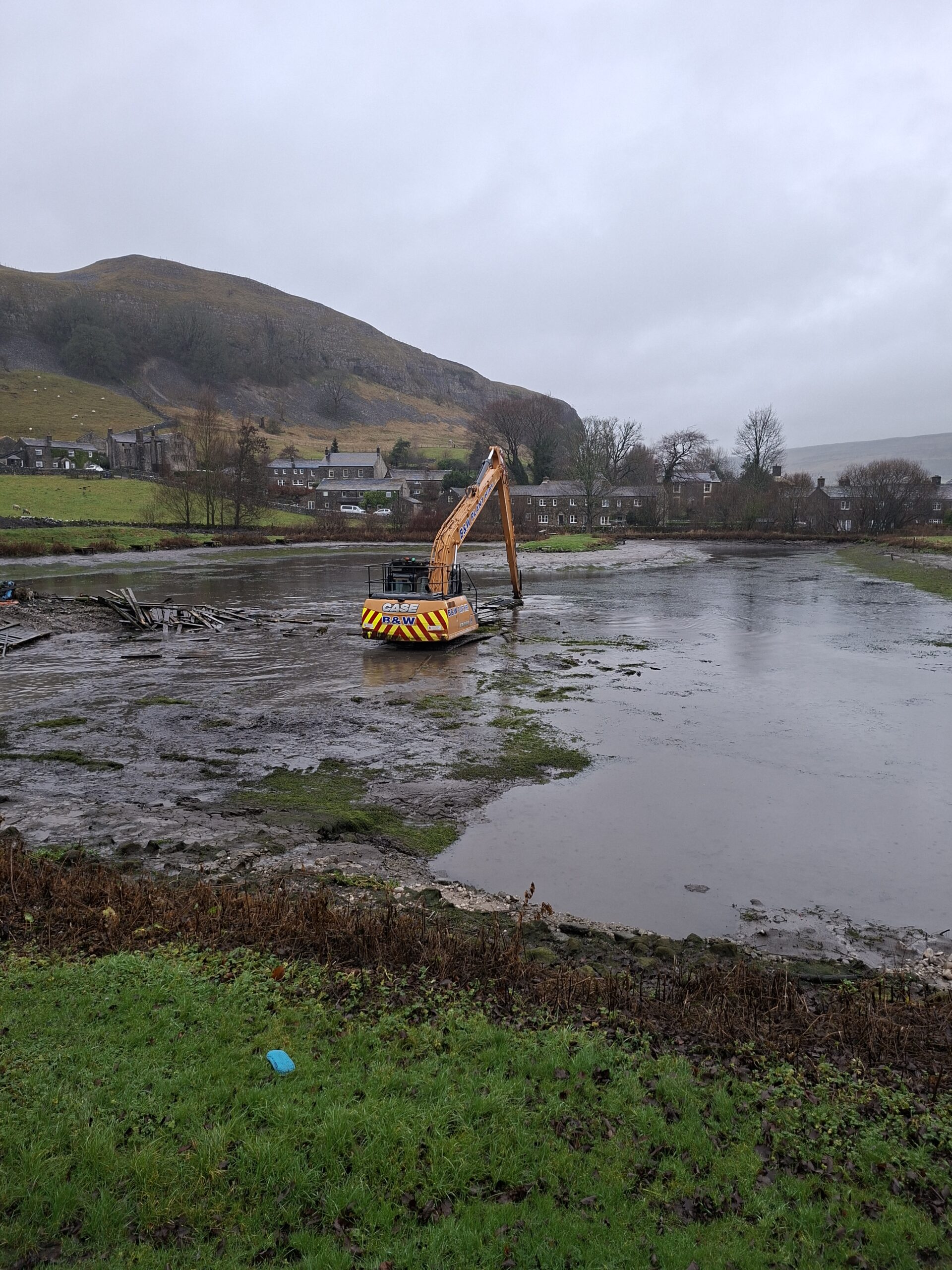 Since we began our desilting project in mid December, what is normally a quiet time of year at Kilnsey has become a hive of activity, with pumping, scraping, shovelling and dumping taking place across the site.