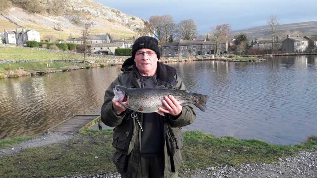 Kilnsey Regular Richard Webb with a 7lb Rainbow